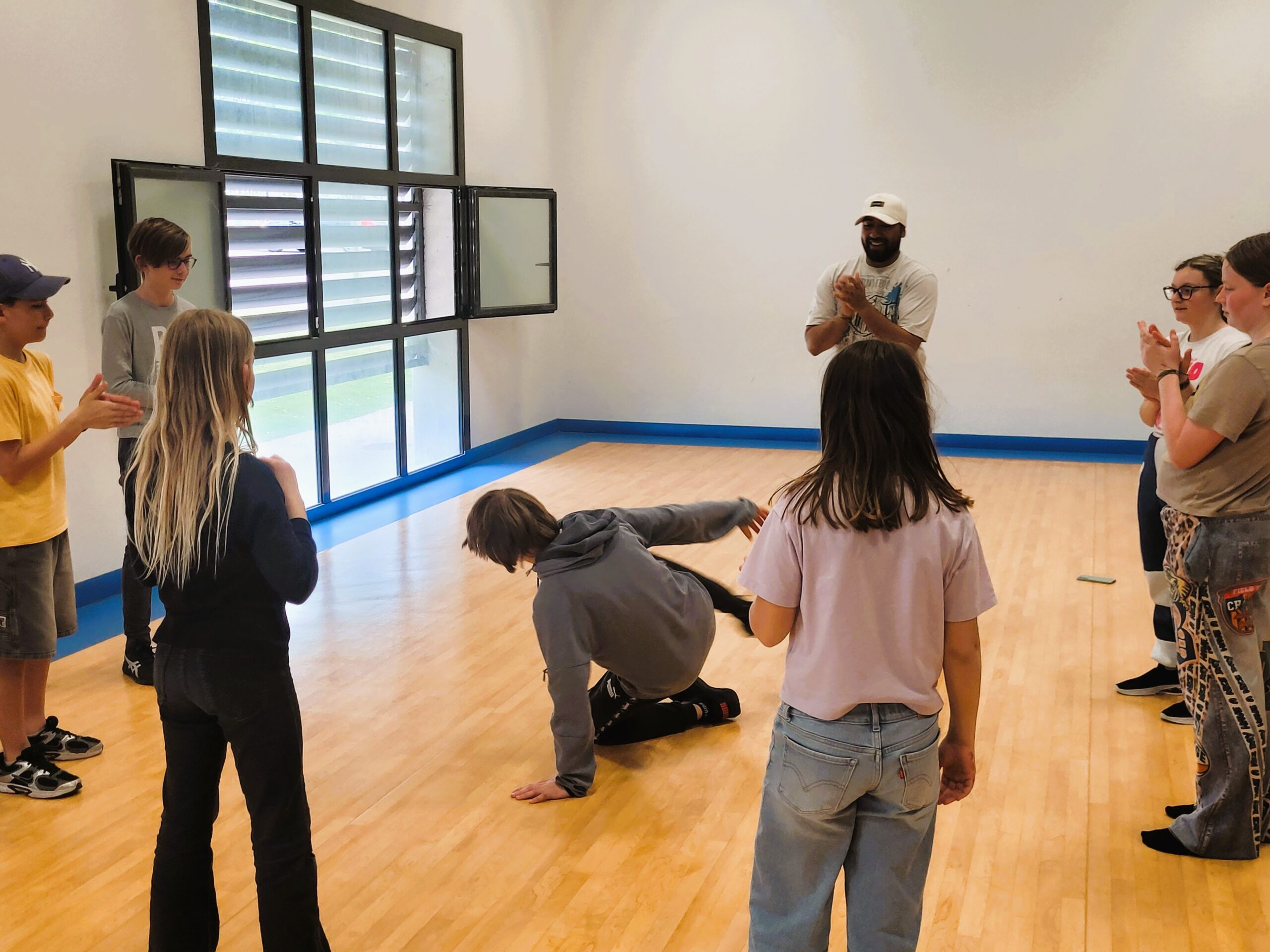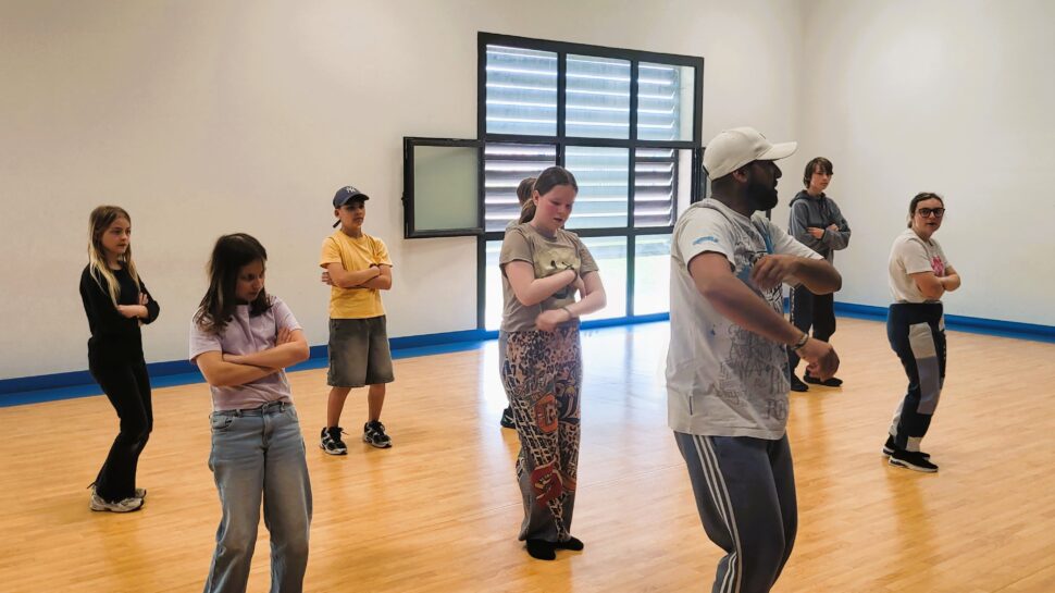 Au côté du danseur et chorégraphe Arnold Anne de la compagnie ARTMIND, un groupe se familiarise avec les pas du hip-hop, en vue de se produire sur scène. Les plus téméraires vont jusqu’à oser le headspin, célèbre figure de breakdance.