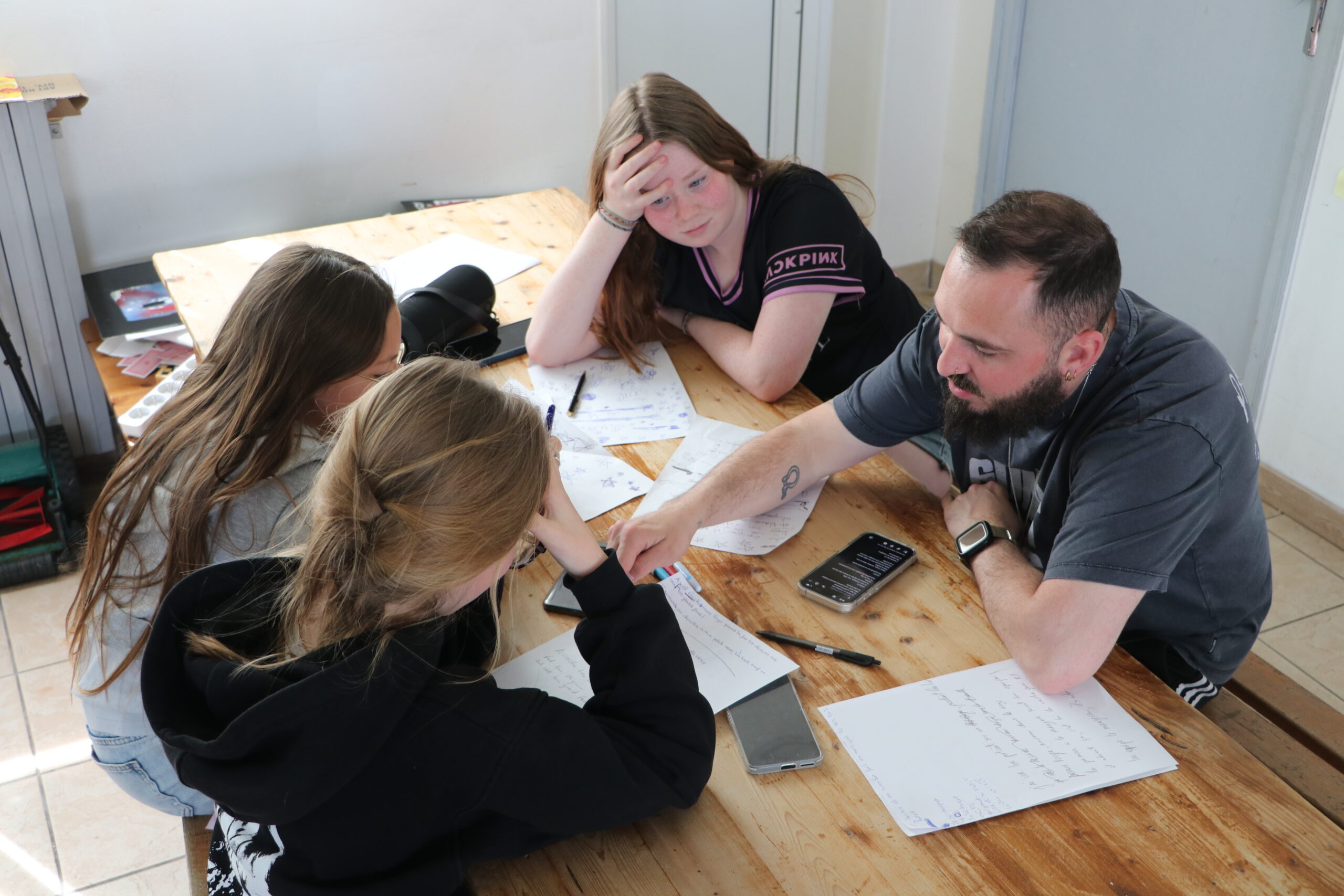 De leur côté, Axel et Charlie, les rappeurs de Créator, transmettent les rudiments de l’écriture slam et de la composition musicale. Objectif : préparer une battle entre deux équipes. Et de se frotter à l’art du clash et de la punchline ! Avant de travailler un couplet qui viendra mettre un peu de légèreté sur la vraie vie et notamment le harcèlement.