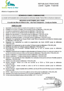 Ordre du jour du conseil communautaire du 24 septembre 2025
