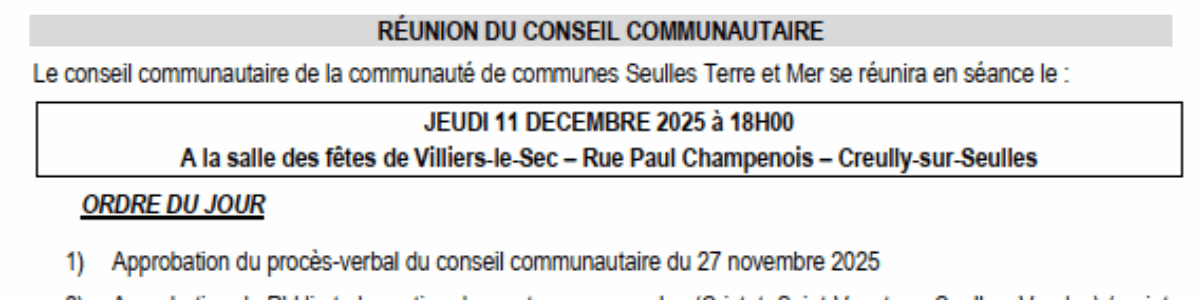 Ordre du jour du conseil communautaire du 11 décembre 2025