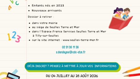 - auprès du secrétariat scolaire de la communauté de communes Seulles Terre et Mer :